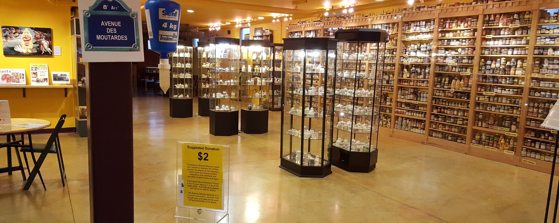 The top floor of the Mustard Museum is a store offering a wide variety of different kinds of mustard and a selection of other loosely-related items.