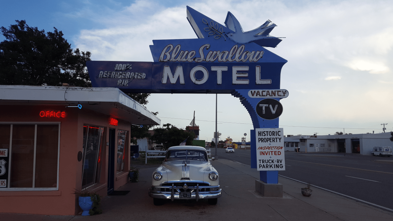 A prime example and recommended stop is the BLUE SWALLOW MOTEL– 815 E. Route 66 Blvd., Tucumcari, NM.