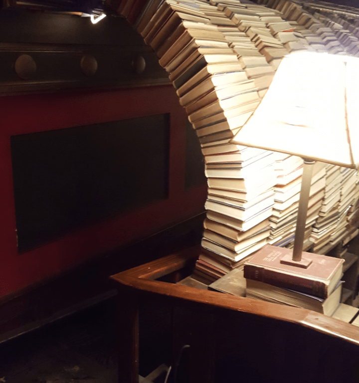 Upstairs, you can find more books in the Labyrinth. This area combines books with art, or potentially the evidence of someone having been EXTREMELY bored one day. Whatever the purpose, the sporadically placed art pieces, including the below pictured book tunnel, are still really cool.
