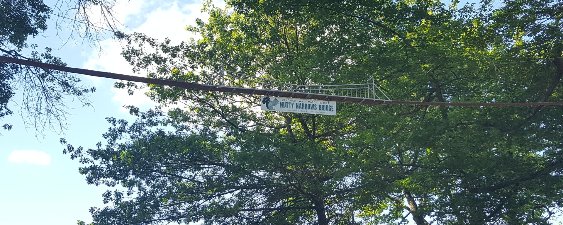It is named Nutty Narrows Bridge after the more infamous Tacoma Narrows Bridge (aka Galloping Gertie; look up the video footage on Youtube or Wikipedia, it’s insane!). That bridge collapsed (unsurprisingly) after only a few months, so clearly this little guy had a better construction model.